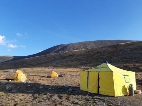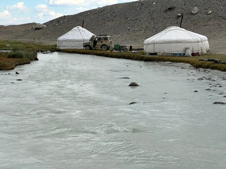 After breakfast, start your trekking towards the Base Camp. This route offers spectacular views of the majestic Altai Mountains. pristine rivers, and untouched wilderness. Camels will carry your travel gear while you gradually ascend toward the legendary Five Holy Peaks of Tavan Bogd. This is an unforgettable introduction to Mongolia's rugged beauty.